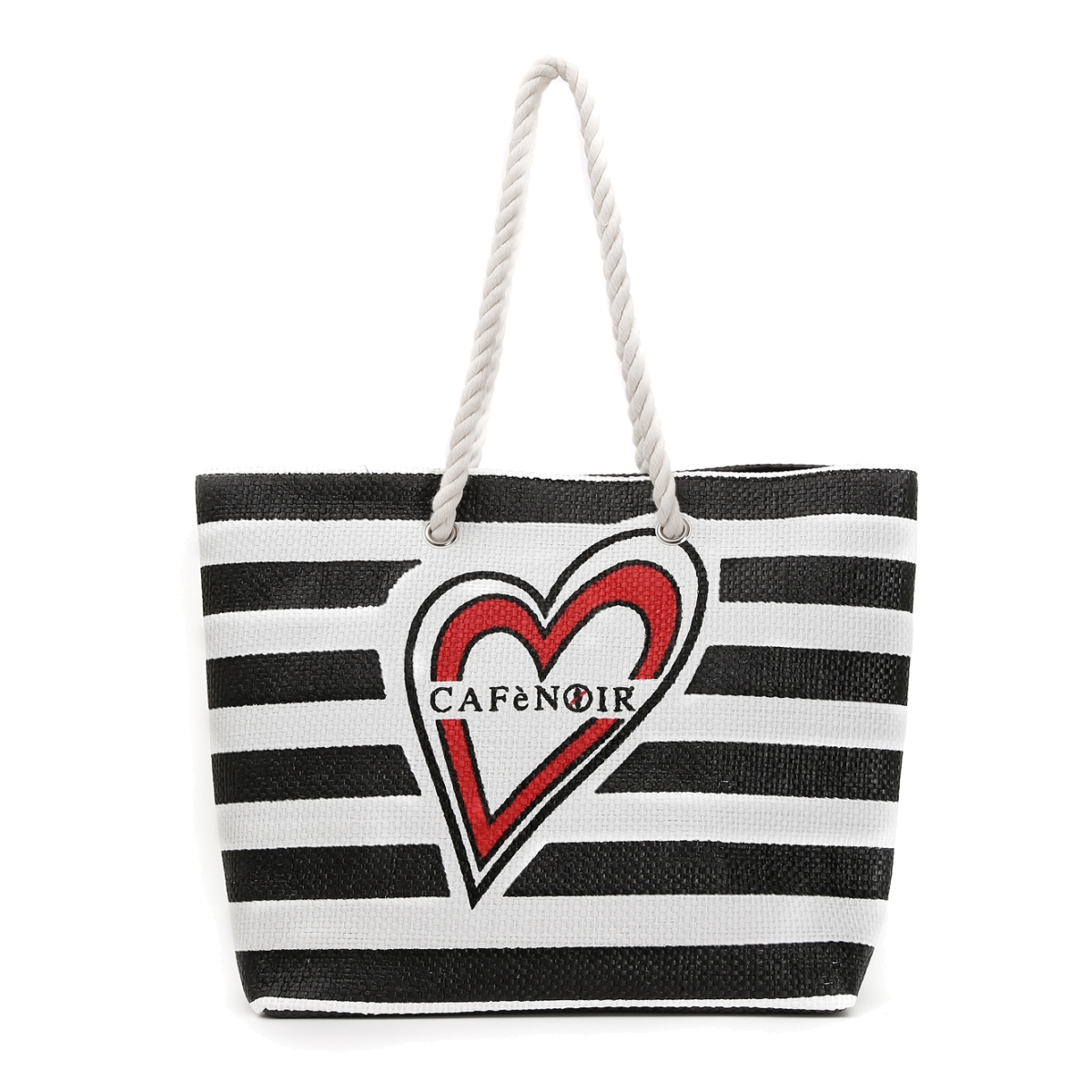 BC931 Shopping a righe con cuore in canvas bianco/nero nero