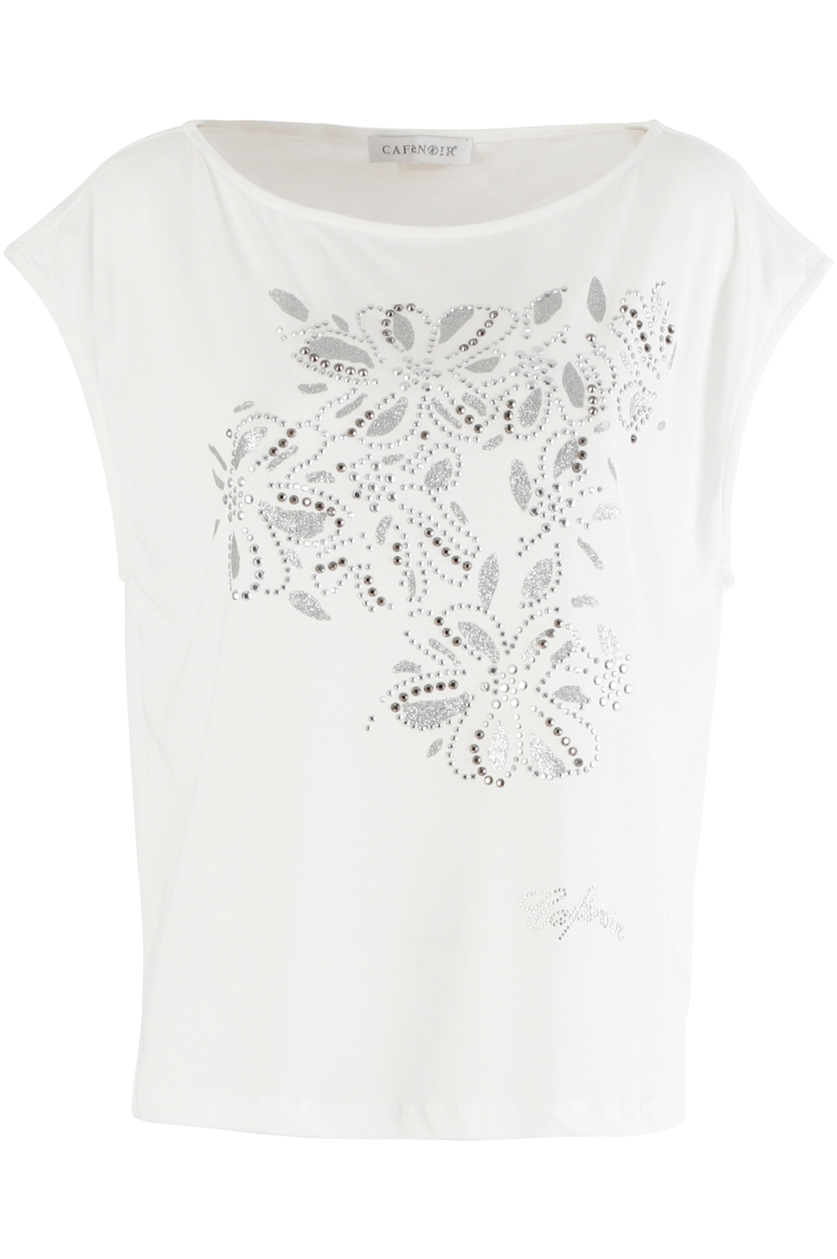 JT960 203 bianco t-shirt m.cotone fiori strass w