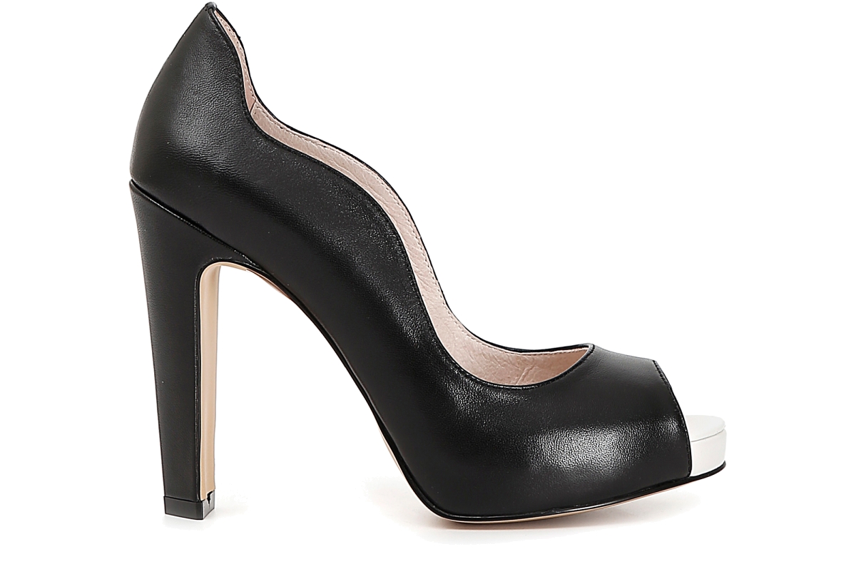 NC127 Slingback in nappa 010 nero con collo sagomato open toe nero