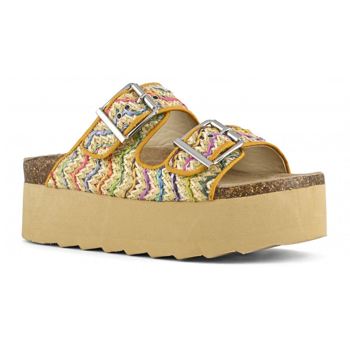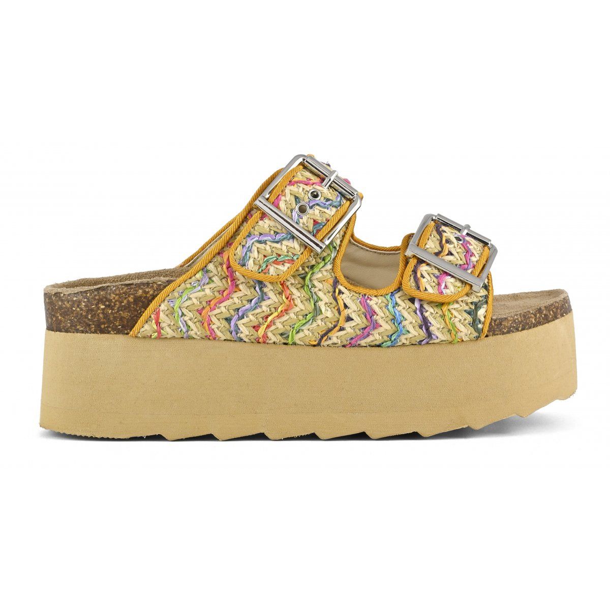 HC.BES308 Natural platform in raffia multicolor w