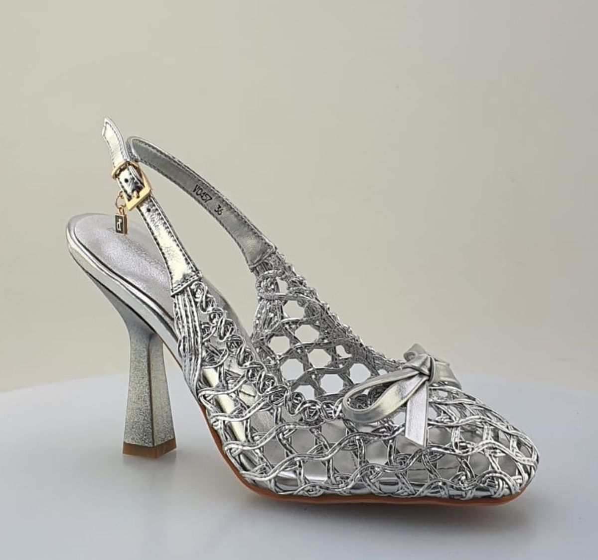 VO457 Intr.silver rete slingback con tacco w